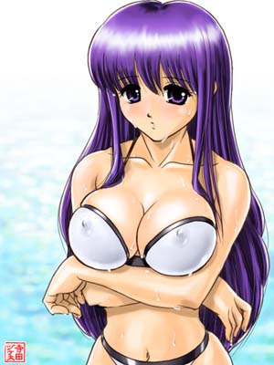 [芹香先輩とプールで] 「To Heart」より来栖川芹香お嬢様のCGです。 このテの水着にはポロリがつきものです 芹香先輩、ポロリには気をつけてくださいね ※このCGは、マウスポインタを特定の 場所に合わせると絵が変化します。